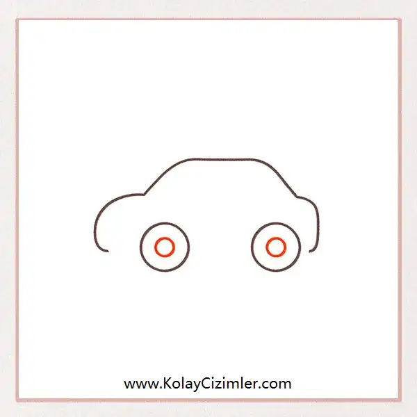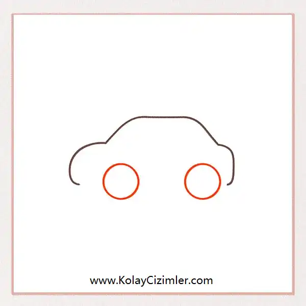 Şimdi tekerlekleri çizelim! Arabayı yandan çizdiğimiz için sadece iki tekerleği göreceğiz. Aynı boyutta iki daire çiz ve bunları arabanın alt kısmına, birkaç santim aralıkla yerleştir. Sonraki adımlarda bu tekerlekleri arabanın gövdesine bağlayacağız.