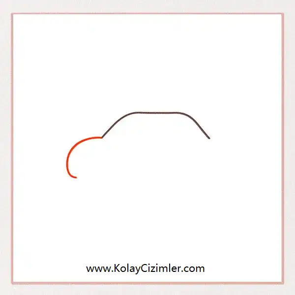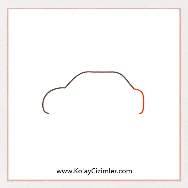 Şimdi arabanın ön kısmına geçelim. Arabayı yandan çiziyoruz, yani profil görünümünde. Arabanın baktığı yön sol taraf olduğu için, sol tarafa büyük bir kavis çiz. Bu kavis arabanın burnu gibi olacak. Devam edelim!