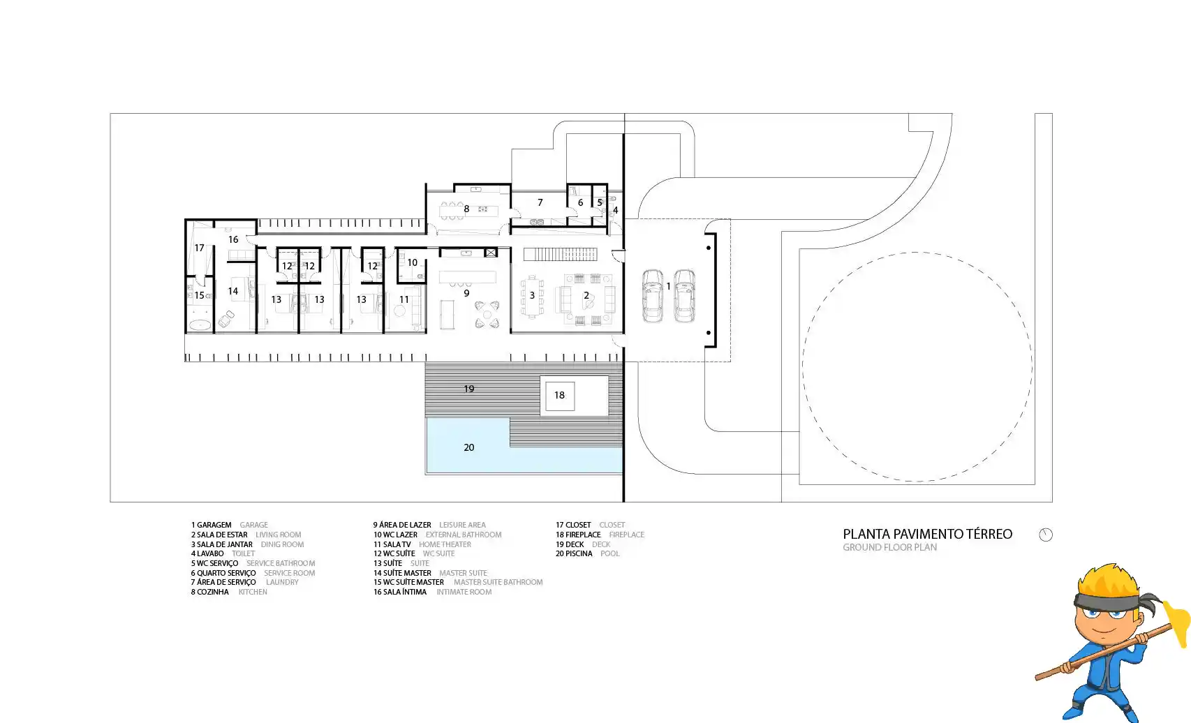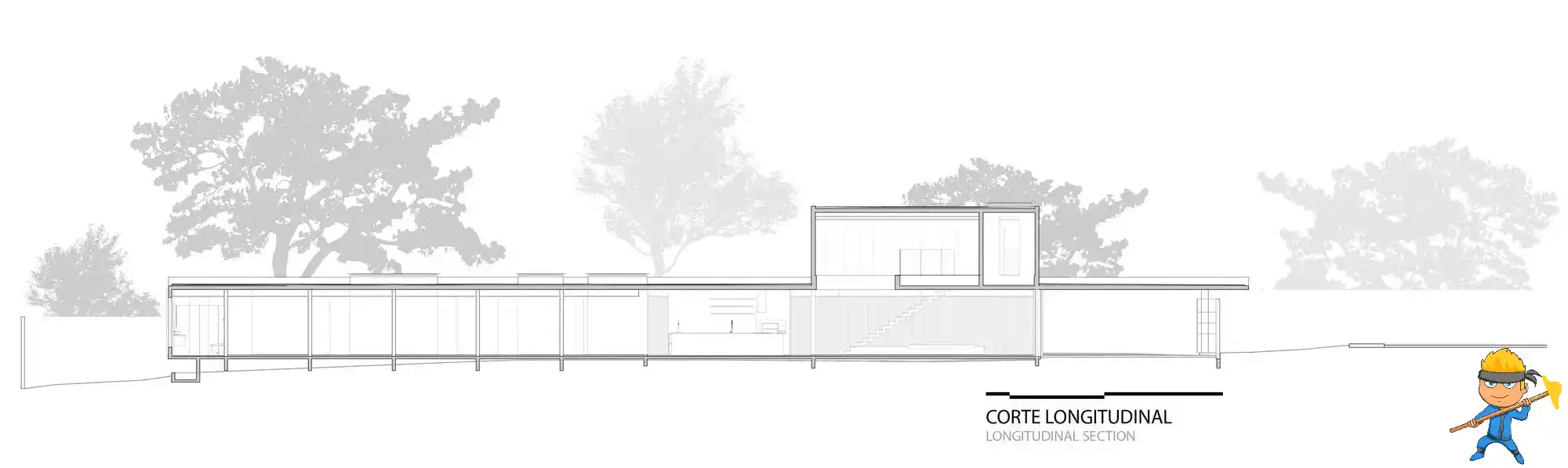 Mimarlık ofisi Esquadra Arquitetos tarafından paylaşılan projenin kat planları, kesit, görünüş çizimleri.