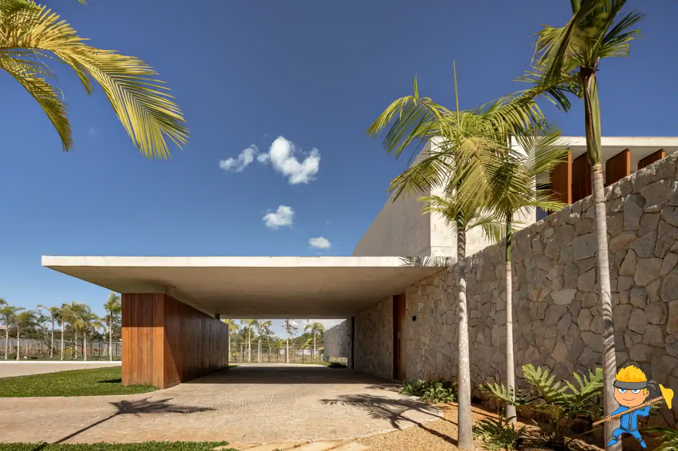 Bu yumuşak erişim fikri, tasarımda bir araç altı geçidi (port-cochère) olarak karşılık buluyor. Çevre ile kurulan ilişkilerde, park manzaraları ve güneş yönelimi göz önünde bulundurularak, evi koruma elemanlarına fazla ihtiyaç duymadan dışa açmak amaçlandı.