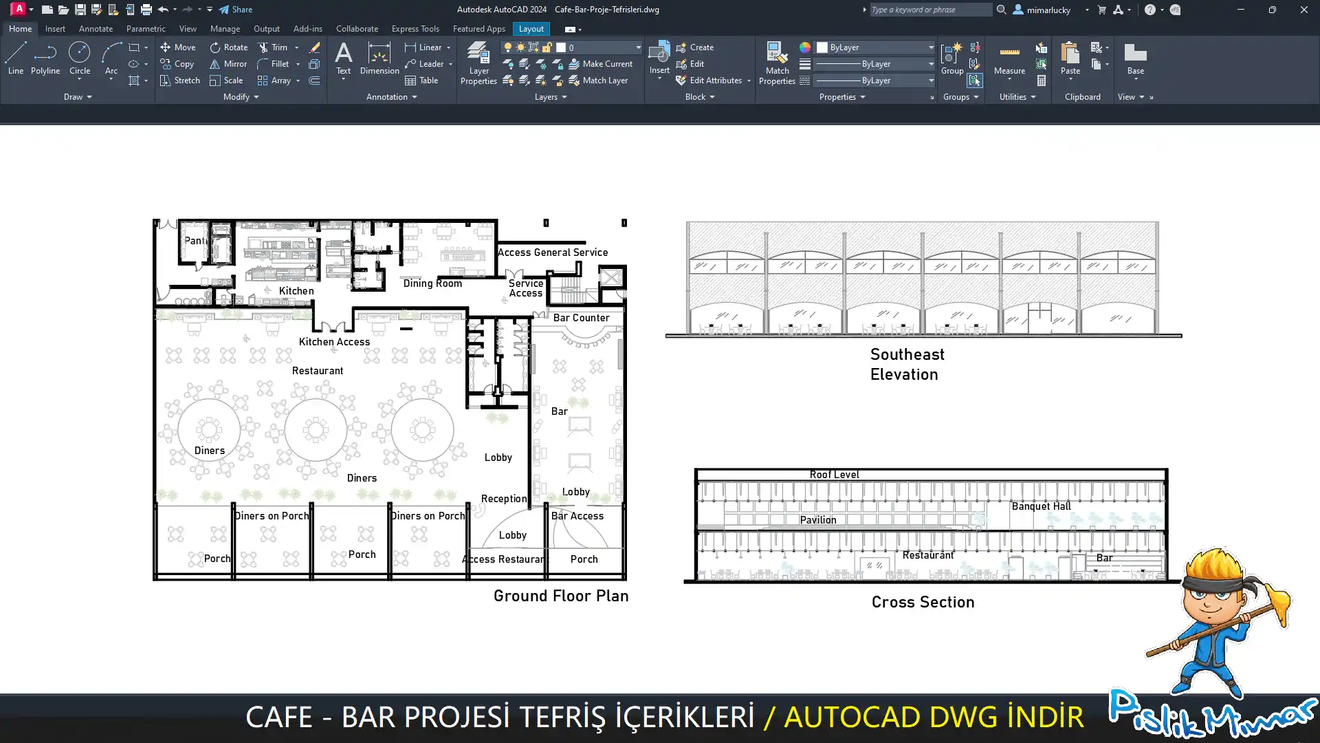 ⏬İndirme Bağlantısı: 👉 Cafe, Bar projesi DWG