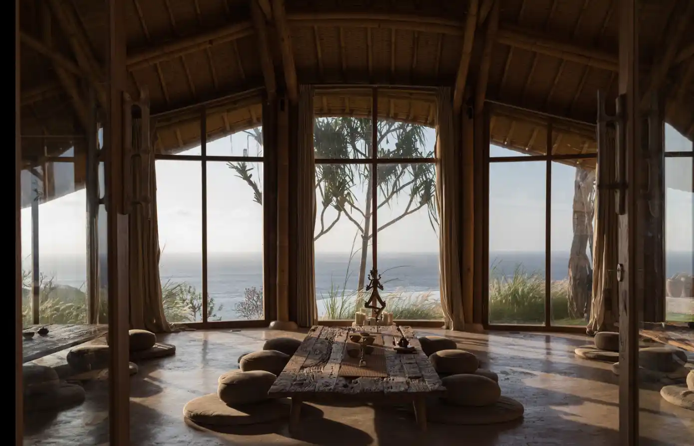 Ahşap ve toprak tonlarının hâkim olduğu iç tasarım, doğadan kopmadan huzurlu bir ortam yaratmayı hedefliyor. Dekorasyonda, geleneksel Bali el sanatlarına ve doğal tekstil ürünlerine yer verilmiş, böylece mekânın ruhuna kültürel bir derinlik kazandırılmıştır.