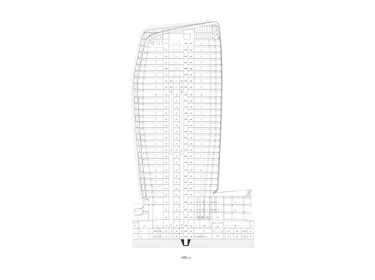 Kesit çizimleri, kulelerin farklı yüksekliklerde ve katmanlı yapıda olduğunu, bu sayede rüzgarla dolan yelkenlerin dinamik duruşunu andıran bir siluet oluşturduğunu göstermektedir. Bu tasarım, çevredeki gelişimlerle uyumlu bir silüet oluşturur ve Qiantang Nehri boyunca uzanan bir skyline yaratır.