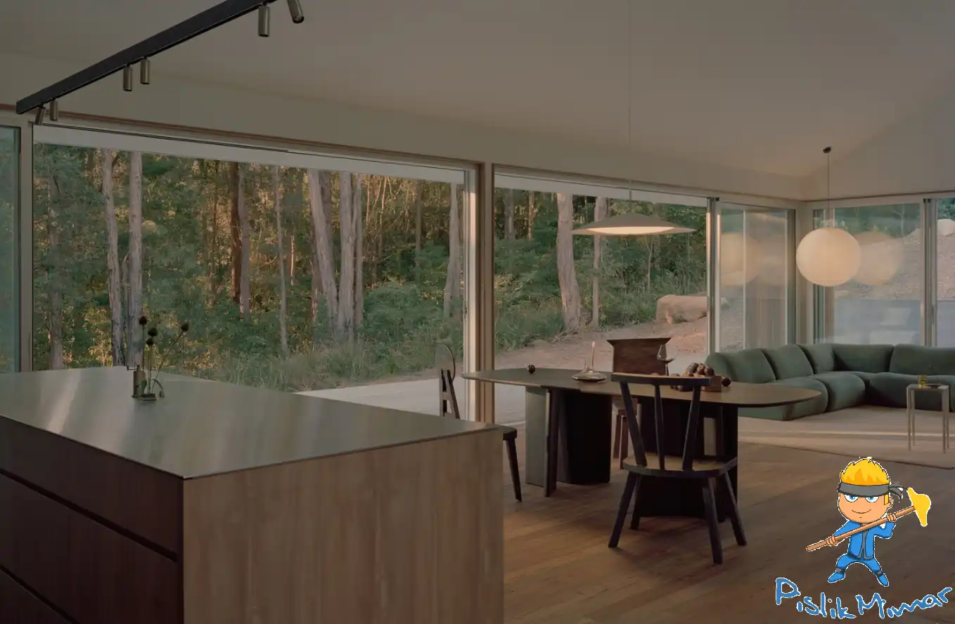 Yangına karşı sıkı kuralların uygulandığı bu alanda, yapı kompakt ve işlevsel bir şekilde tasarlanmış. Her ayrıntı, dayanıklılık ve çevresel hassasiyet gözetilerek düşünülmüş. Klaus Carson Studio projeyi şöyle açıklıyor: “Bu arazi, dikkatli ve yere sağlam basan bir yaklaşım gerektiriyordu. Fiziksel ve yasal sınırlamalar, mimarinin temelini oluşturdu. Bu durum bizi kalıcılığı, işlevi ve doğaya saygıya yöneltti.