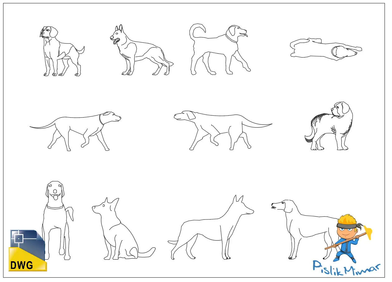 Autocad üzerinden çizilmiş .dwg uzantılı Köpek çizimlerini ücretsiz olarak indirebilirsiniz.