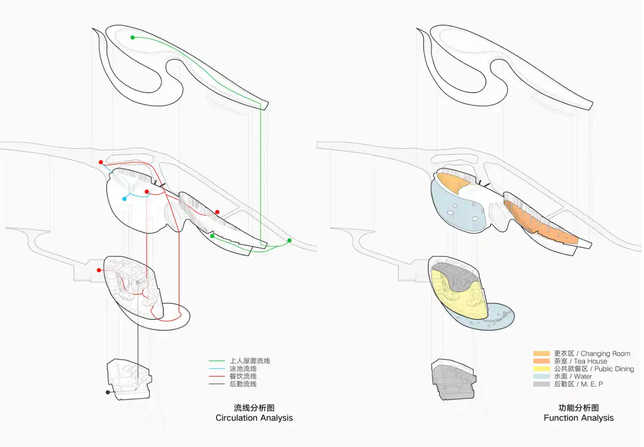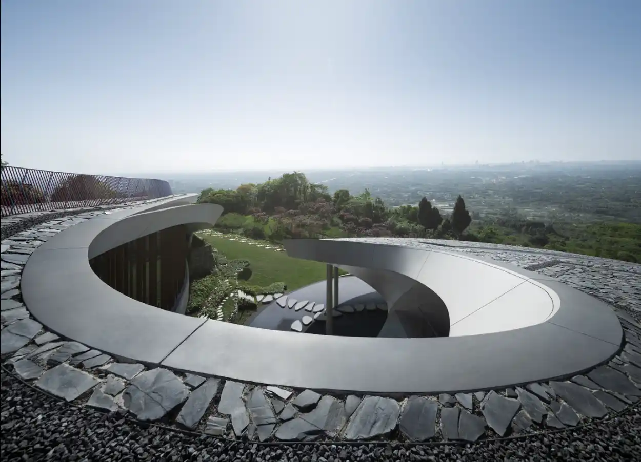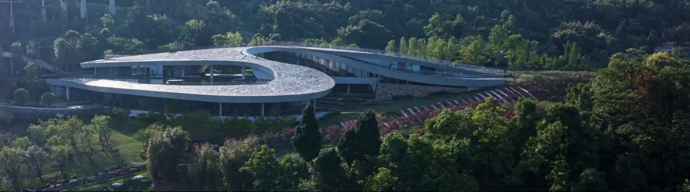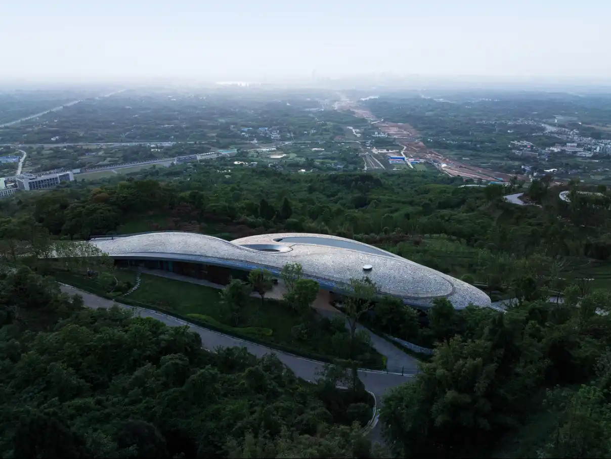 Yatay duruşu, özellikle Chengdu Ovası’nın peyzajını yansıtmaktadır. Farklı yüksekliklerdeki bir dizi yatay ara yüzden oluşur ve bu ara yüzler birbirine kesintisiz bir şekilde bağlanarak bütünlük sağlar.