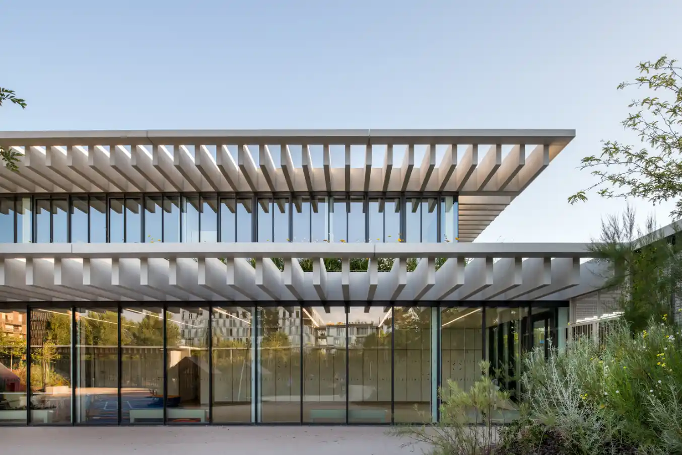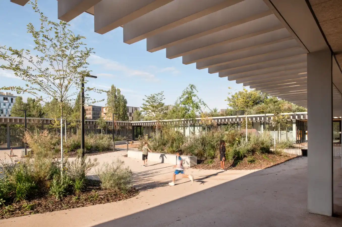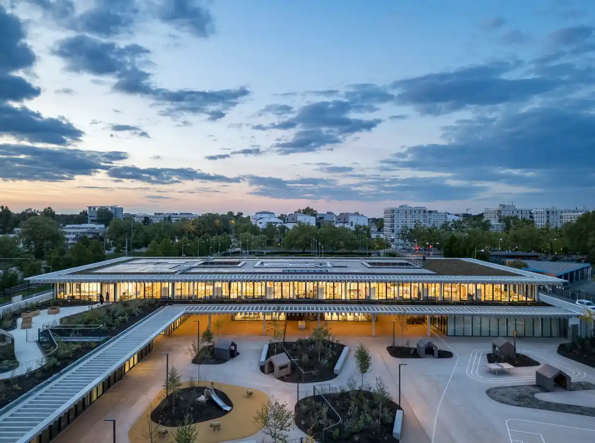 Louise Michel School Complex, eğitimi yalnızca kapalı sınıflarla sınırlandırmayan, öğrencilerin keşfetmesini, etkileşime girmesini ve özgürce öğrenmesini destekleyen bir mimari anlayış sunuyor. Sürdürülebilir malzemeler, doğal ışık kullanımı, esnek mekânlar ve doğayla bütünleşik tasarımıyla bu proje, modern okul mimarisine güçlü bir örnektir.