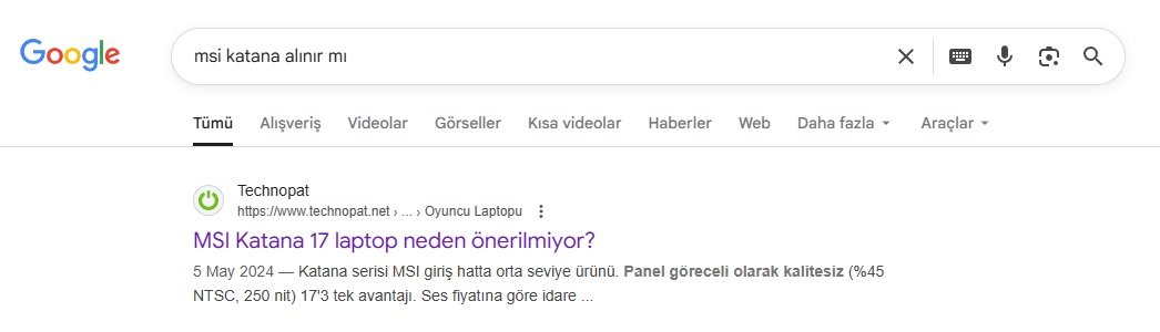 Normalde herhangi bir şey alacağım zaman internet üzerinden araştırma yaparım, bu sefer güvendiğim kişilere sorarak MSİ Katana modelini almıştım fakat kafamı sikeyim yazsana google.com’a msi katana alınır mı? diye? Bakın ne çıkıyor!!!