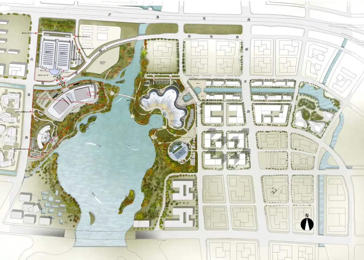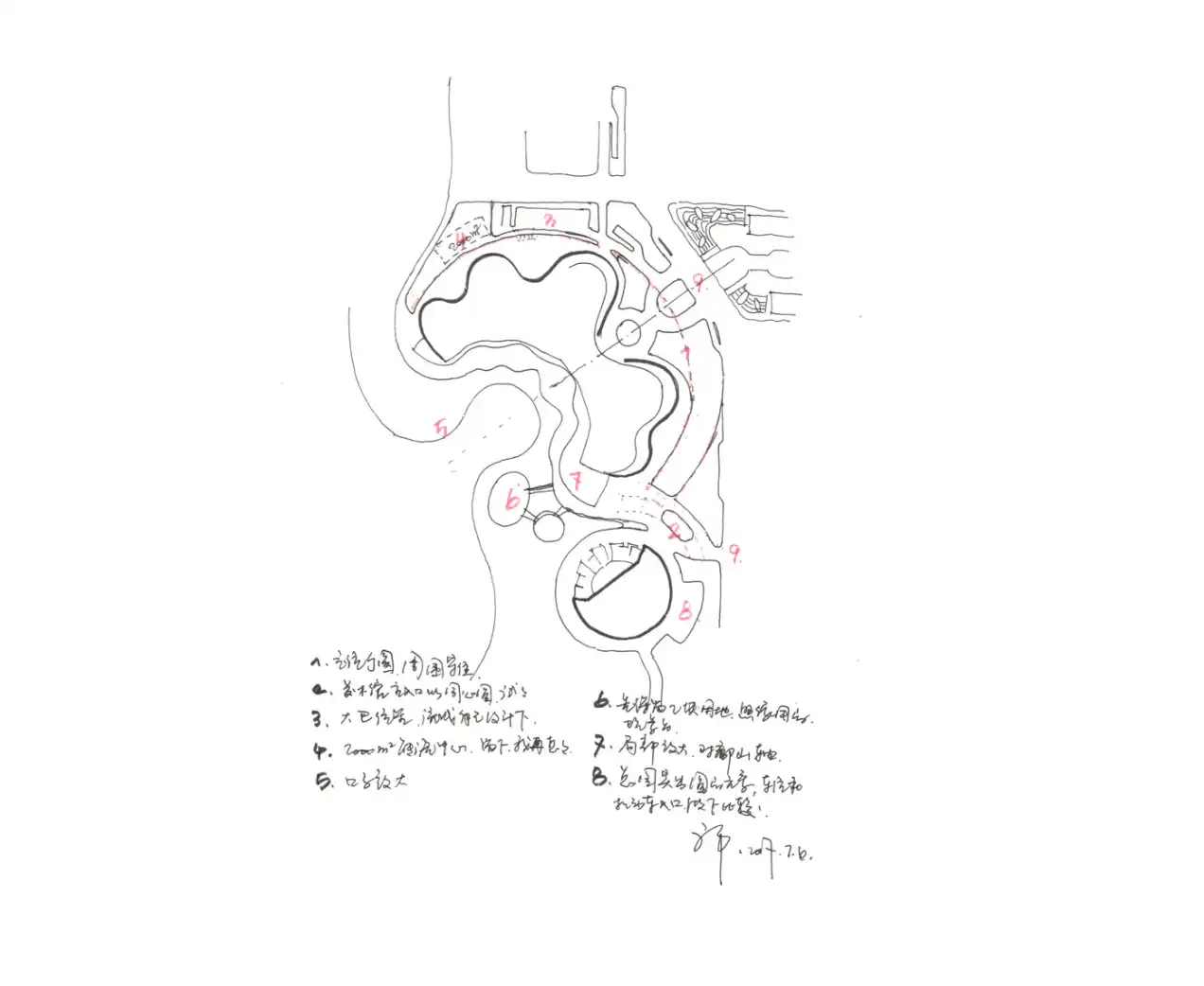 Mimari çizimlerin ilk aşaması olan konsept tasarım, Nantong’un coğrafi ve kültürel bağlamını yansıtacak şekilde geliştirilmiştir. Form olarak suyun akışkan hareketlerinden ilham alınarak dalgalı ve organik bir yapı dili benimsenmiştir. BIAD ekibi, ilk eskiz çalışmalarında dinamik eğriler ve yumuşak geçişlere sahip formlar üzerinde durarak hem estetik hem de çevreyle uyumlu bir yapı hedeflemiştir.