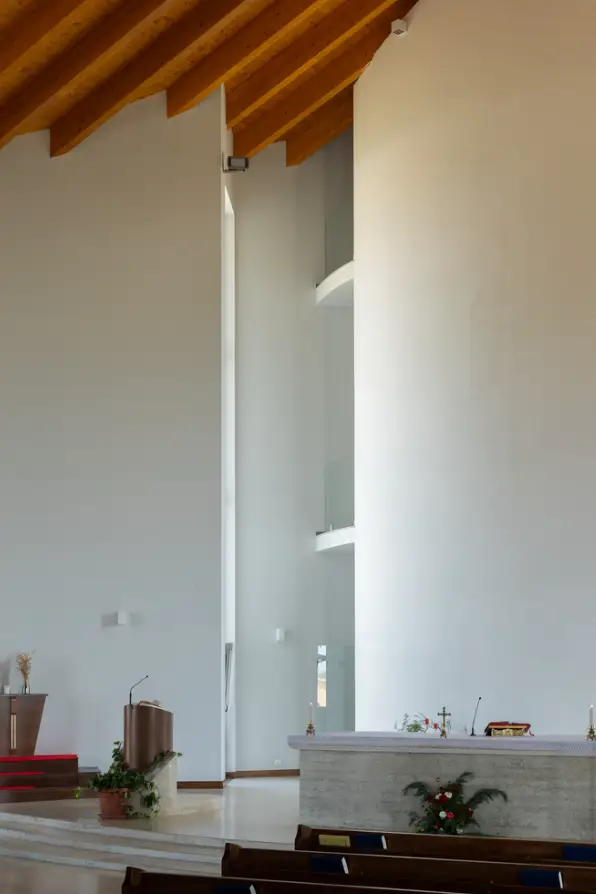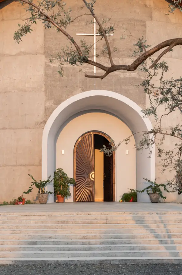 Yapının konumu da tasarımında önemli bir rol oynamaktadır. Köyün yeni merkezi haline gelen kilise, çevre köylerden de görülebilecek şekilde dikkatlice konumlandırılmıştır. Gün ışığını içeriye yönlendiren stratejik açıklıklar, dış cephede dinamik bir ışık-gölge oyunu yaratırken, iç mekânda manevi bir atmosfer oluşturur. Kilisenin yumuşak hatları ve keskin açılardan kaçınan tasarımı, ziyaretçileri kucaklayıcı ve huzurlu bir ortamla karşılamayı amaçlar.
