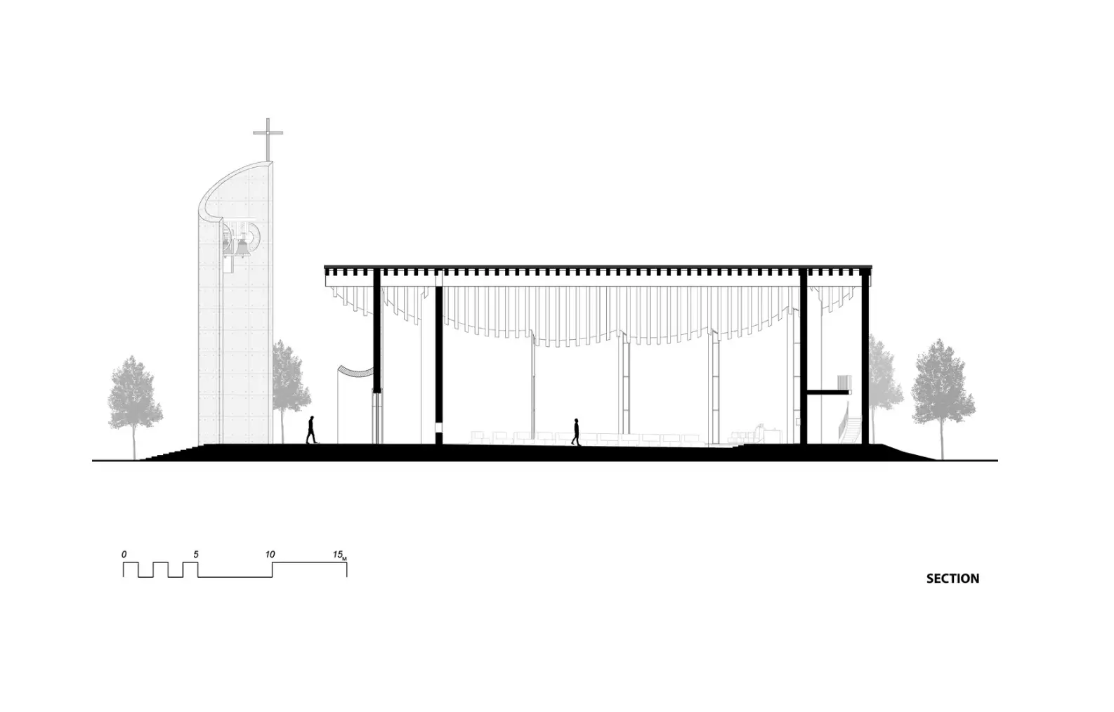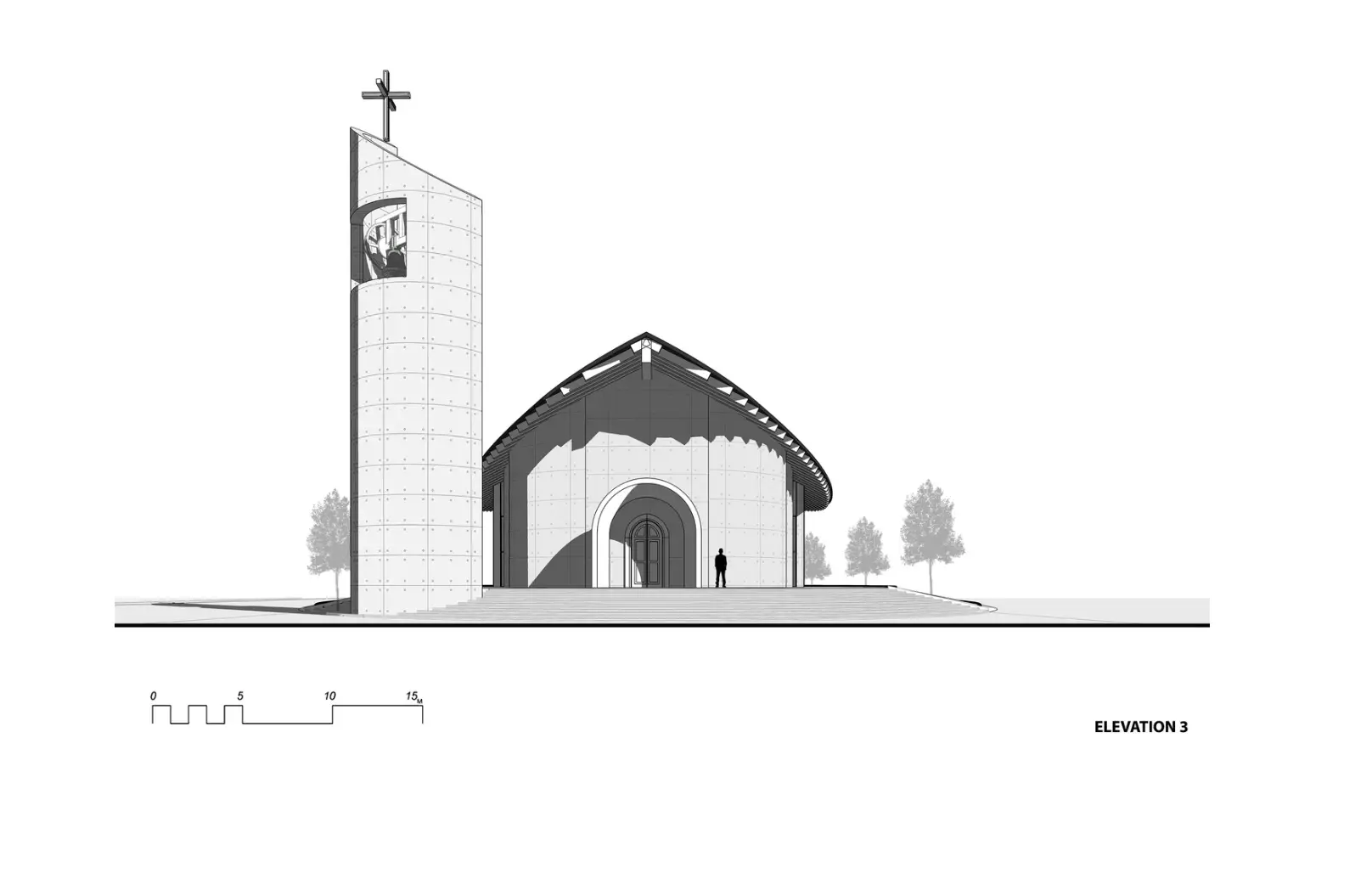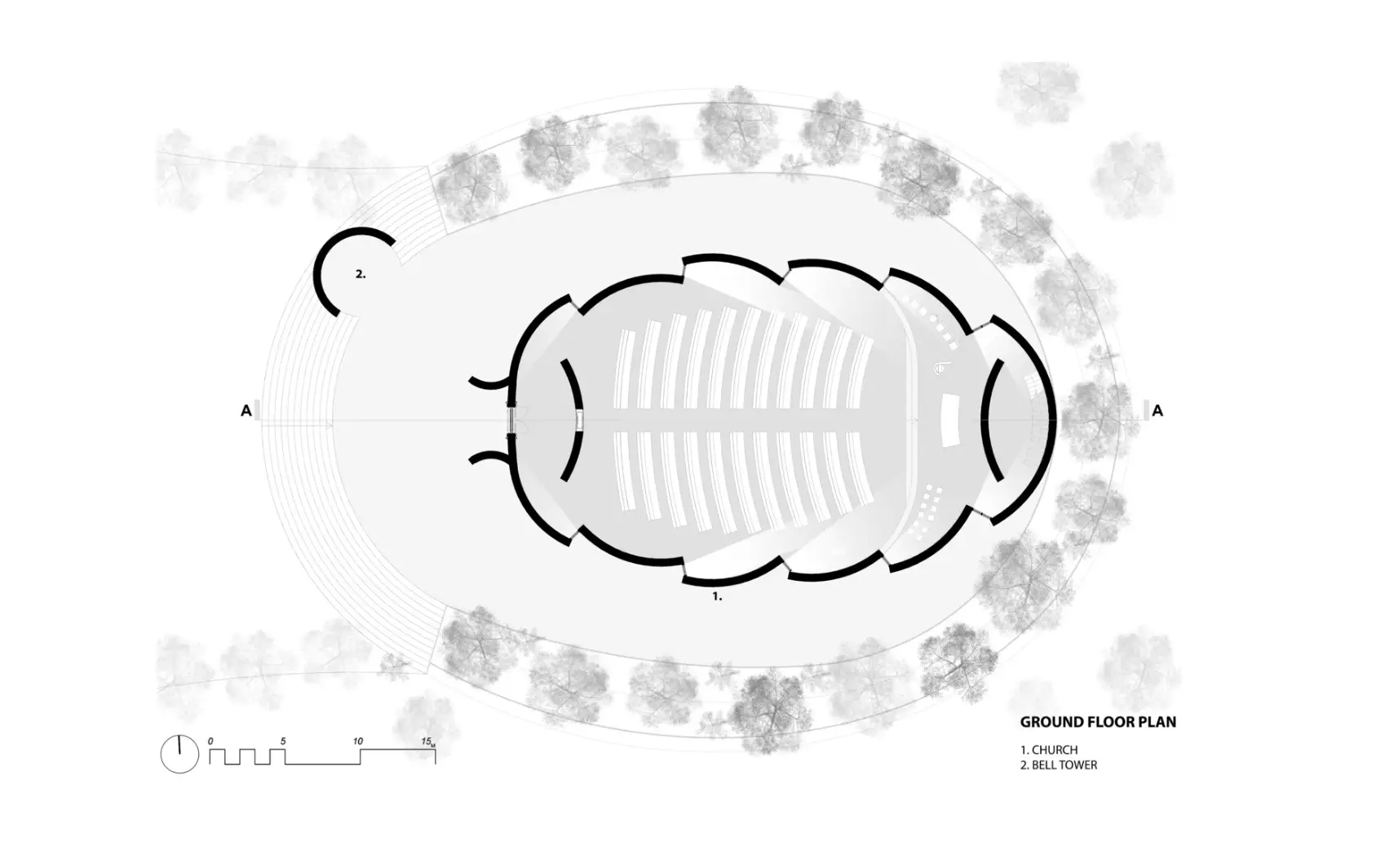 Plan çizimlerinde, yapı çevresindeki doğal unsurlar ve iç mekânın işlevsel akışı, mimarın amacı doğrultusunda titizlikle ele alınmıştır. Çizimlerde yer alan kavisli hatlar, kilisenin dış ve iç tasarımındaki keskin açılardan kaçınılmasını vurgular ve yapının kapsayıcı doğasını simgeler.