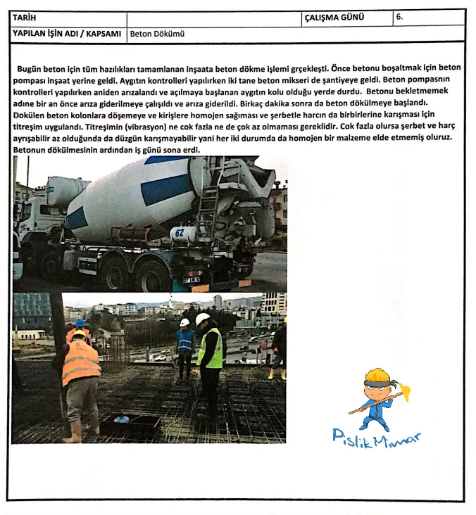 Şantiye stajı yapacak arkadaşlar için örnek olarak bir günün dosya örneğini sizlerle paylaşıyorum. Şantiye stajında genel olarak Beton Dökümü, İş Takibi ve Kontrolü, Malzeme Siparişi, İş programı yapılması ve iş programının uygulanması gibi konular üzerine defter doldurulur.