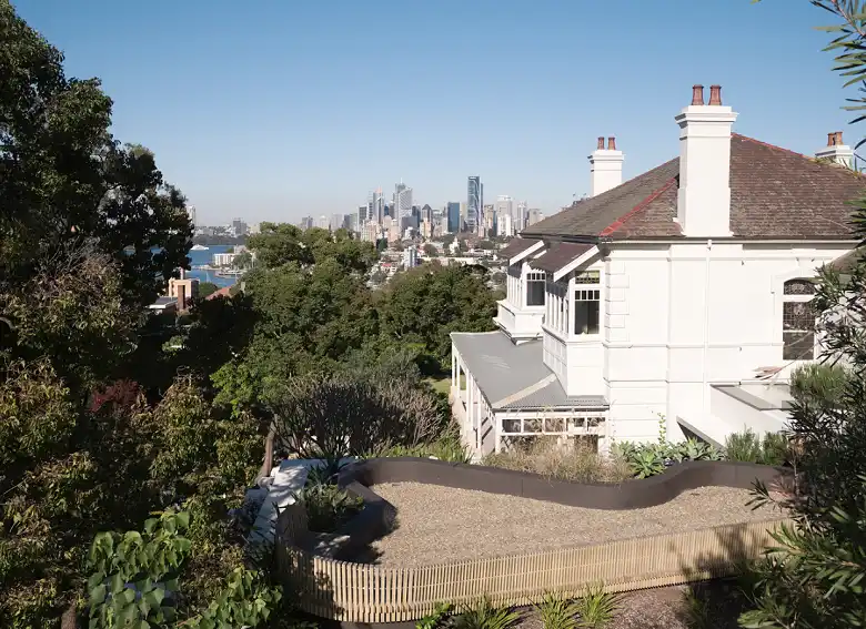 Başarılı bir muhasebeci için inşa edilen orijinal iki katlı ev, büyük bir araziye yerleşmiş, Sydney Limanı’na ve karşısındaki Sydney şehrine bakan muazzam manzaralara sahiptir.