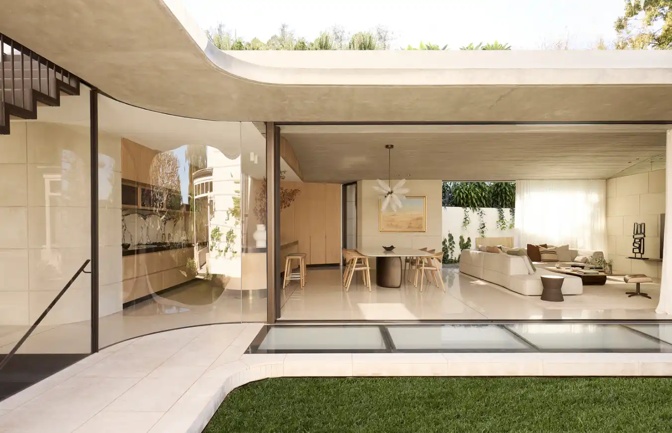 Ancak bugün, hızlı şehirleşmenin tahribatına uğramış bu binalara daha saygılı ve hürmetkar bir yaklaşımımız var. Hayatta kalan bu binaları korumak için “miras listesine” alıyoruz ve onları üzerine inşa etmiyoruz veya önlerine bina yapmıyoruz. Bununla birlikte, tarihi bir binanın modern yaşam tarzlarımızla uyumlu olabilmesi için eklemeler genellikle gerekli olur ve bu eklemeleri gizlemeye çalışırız; onları arka tarafa yerleştiririz ya da bu büyük evde olduğu gibi, yer altına gizleriz.