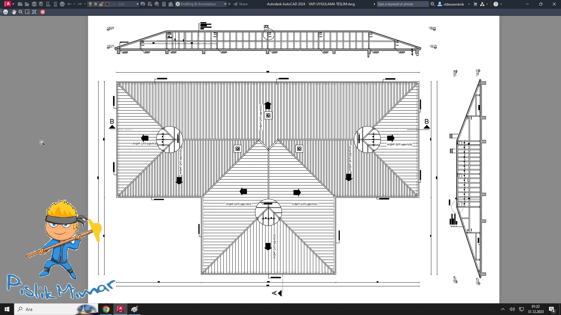 - Çatı Planı, 1/50 Ölçek Kesit Çizimi,