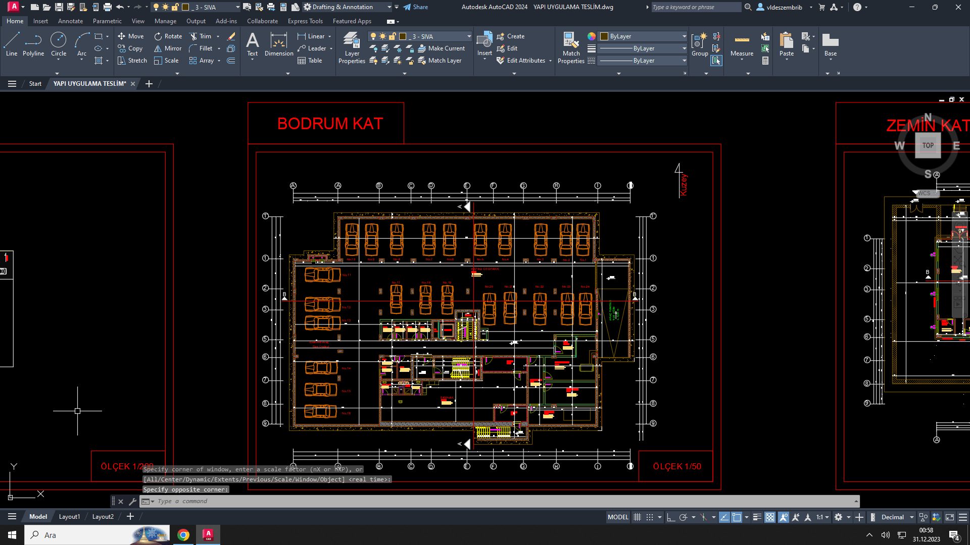 Bodrum Kat Çizim kurallarına uygun olarak;