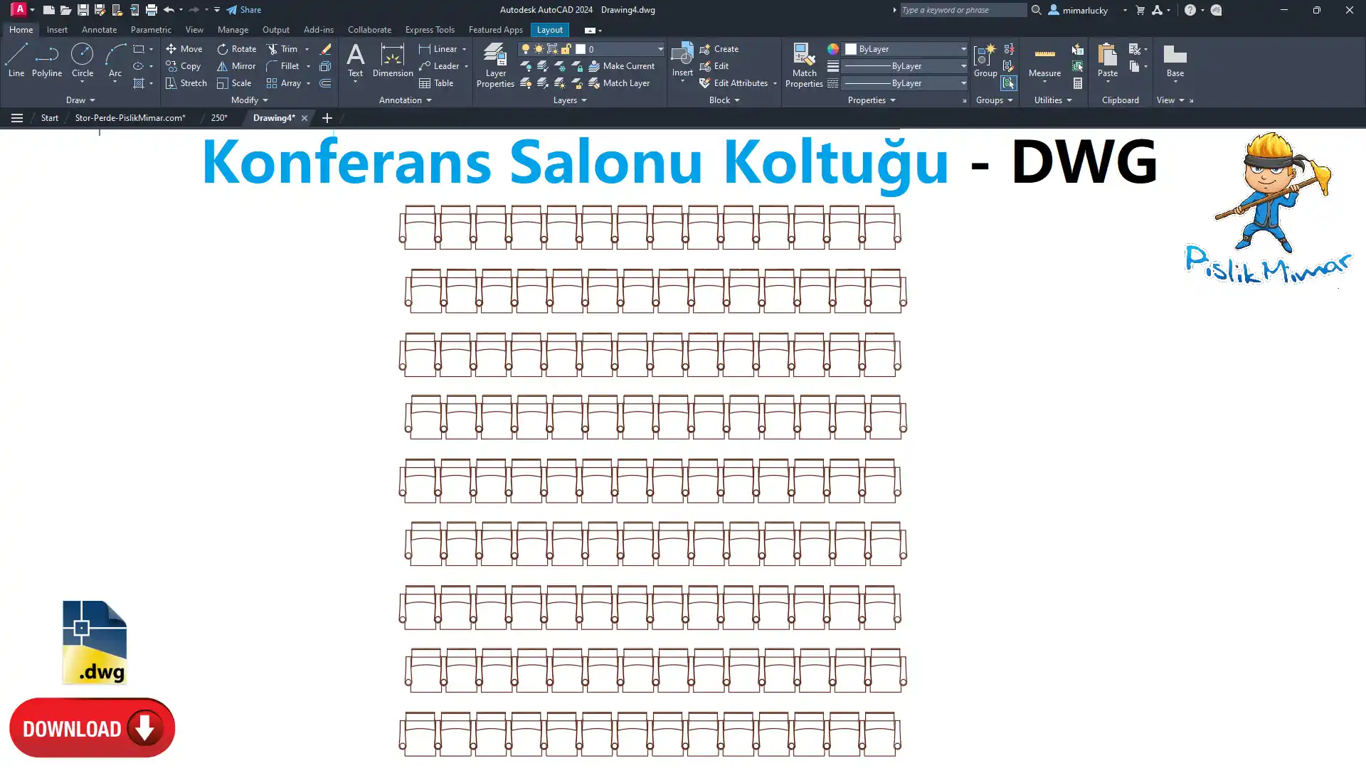 İndirme Bağlantısı: 👉 Konferans Salonu Koltuğu – DWG