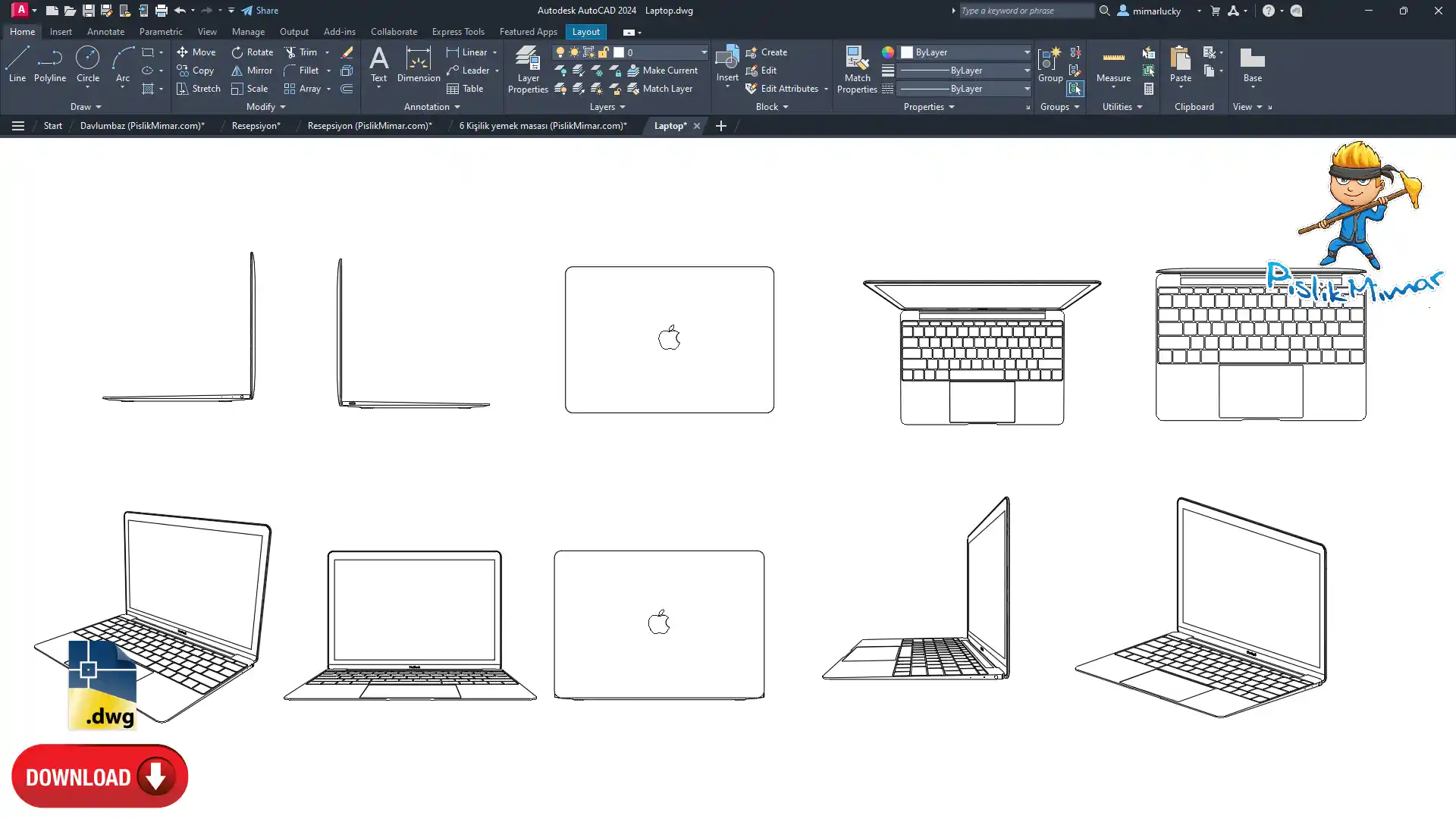 Laptop Dwg çizimini ücretsiz AutoCAD formatında indirin, Laptop CAD Block free download for AutoCAD. Bu çizimler sayesinde projelerinize kolayca entegre edebileceğiniz detaylı ve ölçekli bilgisayar bloklarına ulaşabilir, tasarım sürecinizi hızlandırabilirsiniz.