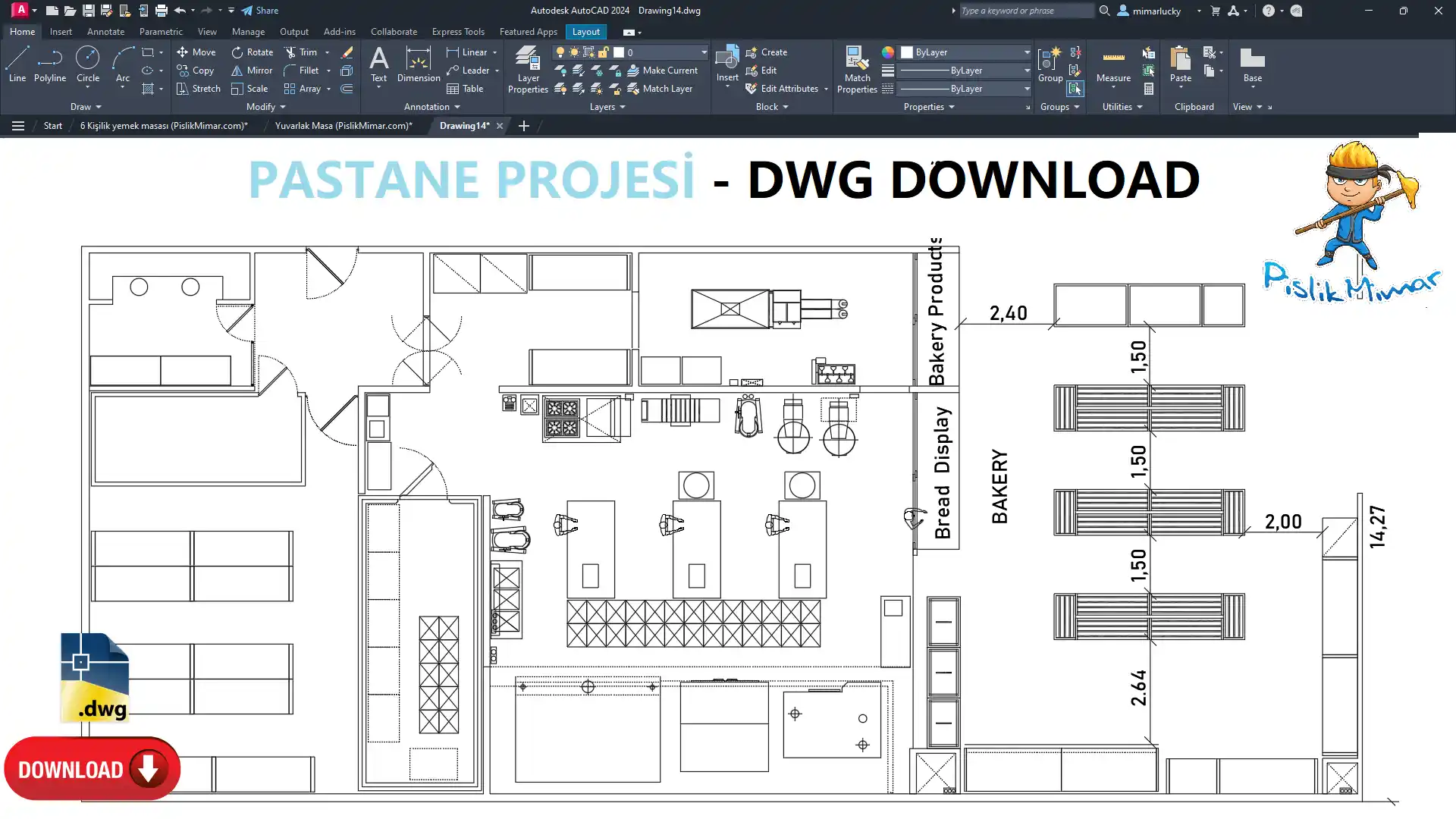 Pastane Projesi Dwg çizimini ücretsiz AutoCAD formatında indirin, Bakery Project CAD Block free download for AutoCAD. Bu çizimler sayesinde projelerinize kolayca entegre edebileceğiniz detaylı ve ölçekli mekan planlarına ulaşabilir, tasarım sürecinizi hızlandırabilirsiniz.
