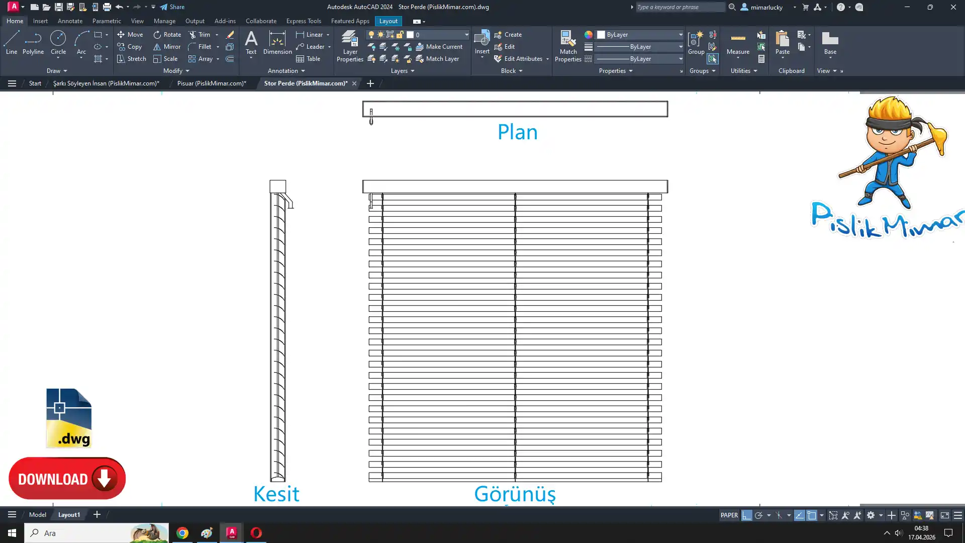 İndirme Bağlantısı: 👉 Stor Perde .dwg